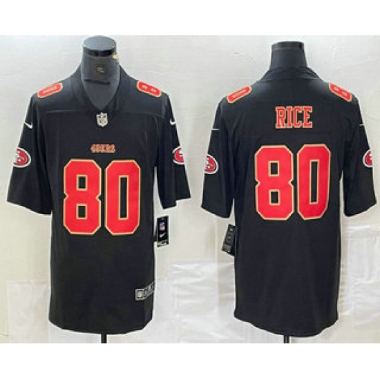 Men's San Francisco 49ers #80 Jerry Rice Black Red Fashion Vapor Limited Stitched Jersey