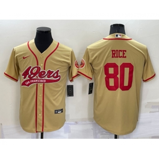 Men's San Francisco 49ers #80 Jerry Rice Gold Stitched Cool Base Nike Baseball Jersey
