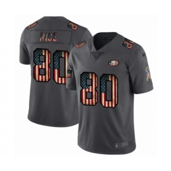 Men's San Francisco 49ers #80 Jerry Rice Limited Black USA Flag 2019 Salute To Service Football Jersey