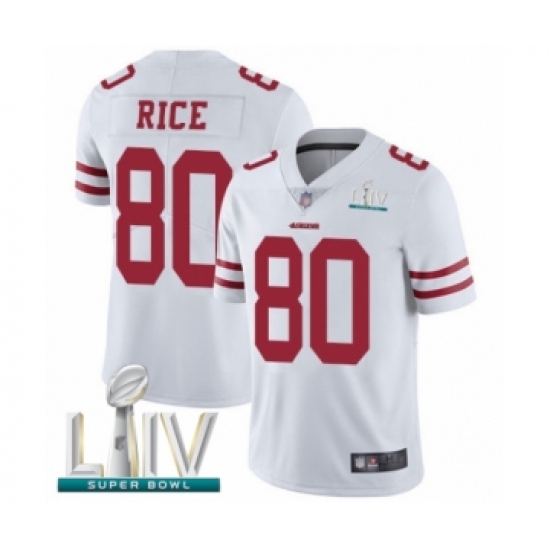 Men's San Francisco 49ers #80 Jerry Rice White Vapor Untouchable Limited Player Super Bowl LIV Bound Football Jersey