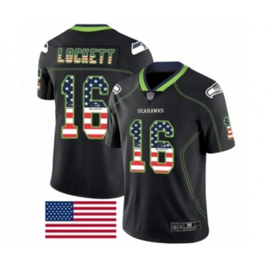 >Men's Seattle Seahawks #16 Tyler Lockett Limited Black Rush USA Flag Football Jersey
