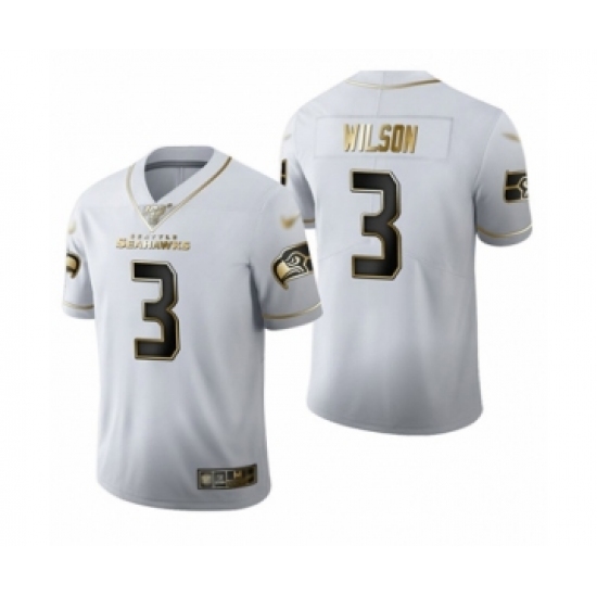 Men's Seattle Seahawks #3 Russell Wilson Limited White Golden Edition Football Jersey