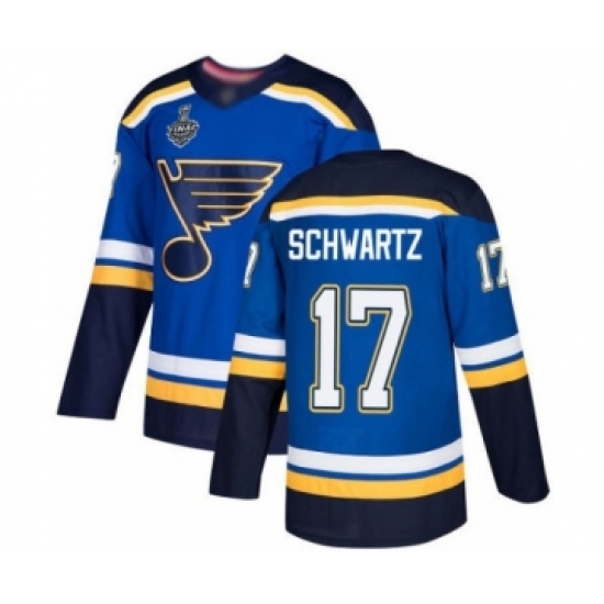 >Men's St. Louis Blues #17 Jaden Schwartz Authentic Royal Blue Home 2019 Stanley Cup Final Bound Hockey Jersey
