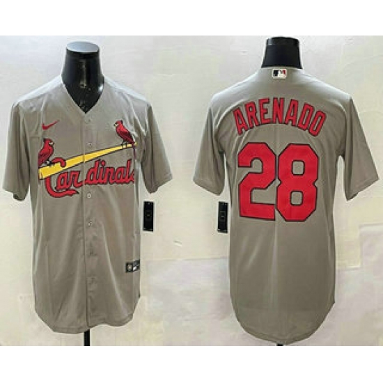 Men's St Louis Cardinals #28 Nolan Arenado Number Grey Stitched Cool Base Nike Jersey