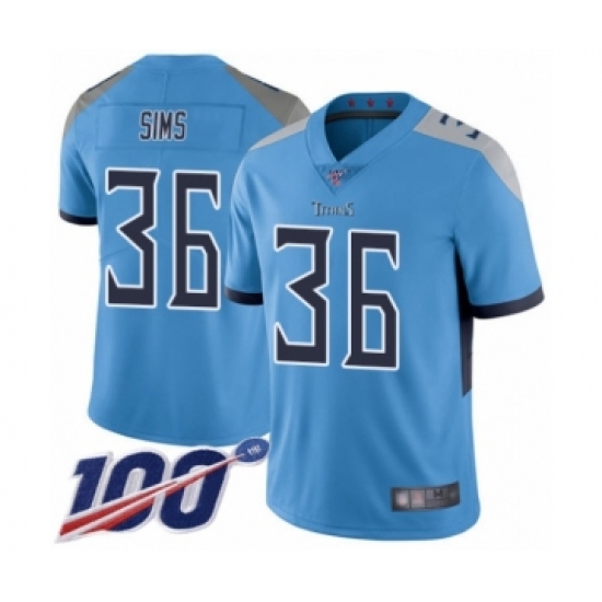 Men's Tennessee Titans #36 LeShaun Sims Light Blue Alternate Vapor Untouchable Limited Player 100th Season Football Jersey