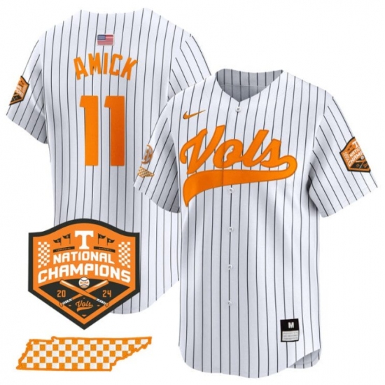 >Men's Tennessee Volunteers #11 Billy Amick White Pinstripe 2024 Champions Vapor Limited Stitched Jersey