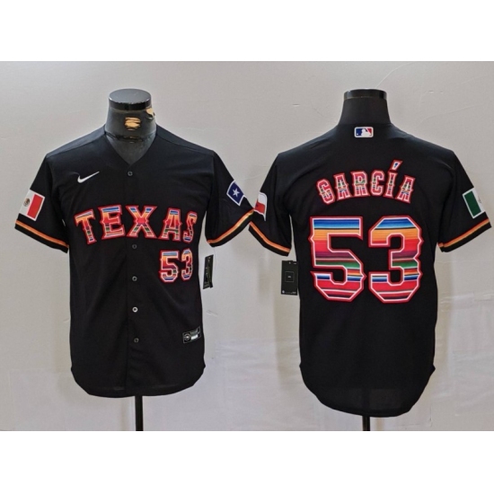 Men's Texas Rangers #53 Adolis Garcia Black Rainbow Mexico Cool Base Stitched Jersey