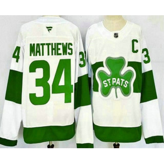 Men's Toronto Maple Leafs #34 Auston Matthews White St Pats Authentic Jersey