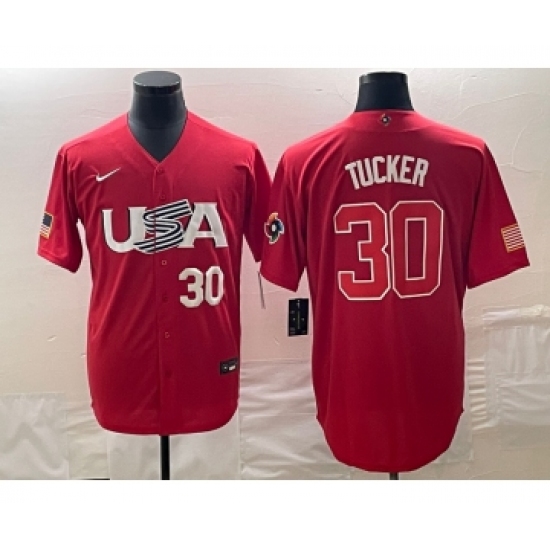 >Men's USA Baseball #30 Kyle Tucker Number 2023 Red World Classic With Patch Stitched Jersey2