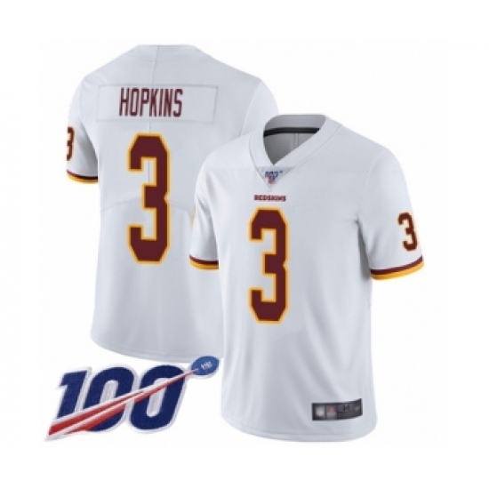 >Men's Washington Redskins #3 Dustin Hopkins White Vapor Untouchable Limited Player 100th Season Football Jersey