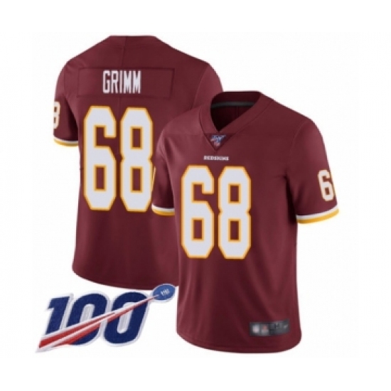 >Men's Washington Redskins #68 Russ Grimm Burgundy Red Team Color Vapor Untouchable Limited Player 100th Season Football Jersey