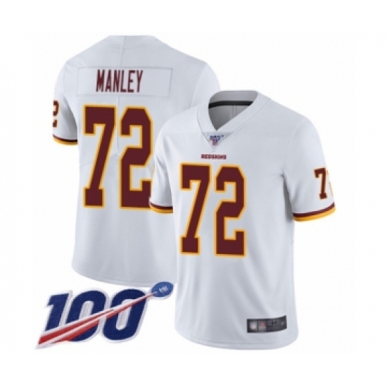 Men's Washington Redskins #72 Dexter Manley White Vapor Untouchable Limited Player 100th Season Football Jersey