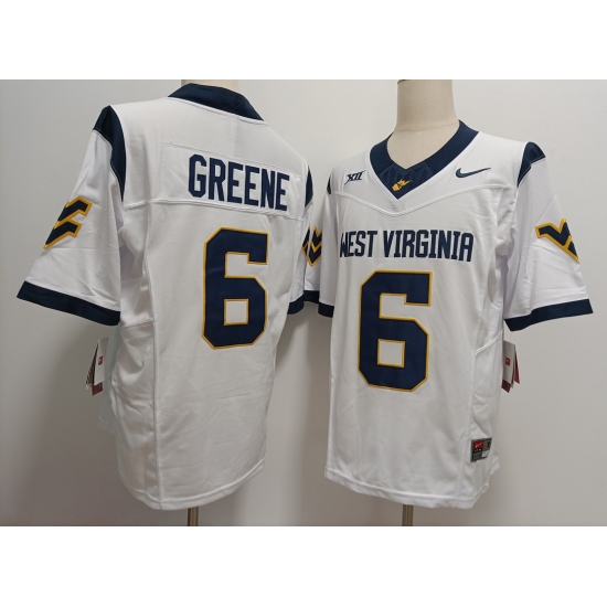 Men's West Virginia Mountaineers #6 Garrett Greene White FUSE College Stitched Jersey