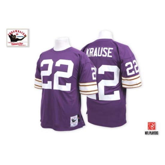 Feel like part of your favorite team by wearing this NFL® Mitchell And Ness Minnesota Vikings #22 Paul Krause Purple Team Color Authentic Throwback NFL Jersey, made of thick, high-quality Pro-Brite fabric for a genuine gridiron look. The players number which 100% stitched is displayed in tackle twill on the chest, back and sleeves, along with the team name on the front. The players name which 100% stitched is displayed on a sewn-down nameplate at the back. 100% Pro-Brite nylon and 100% Pro-Brite polyester for body, 100% lycratalic spandex dazzle for Side Panels/Collar/Cuffs, NFL® Equipment patch sewn on the bottom of the front collar or fabric insert, NFL® Equipment jock tag with numeric sizing is applied to the lower left bottom of the jersey, Officially licensed.