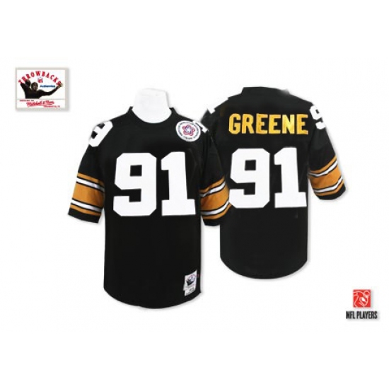 Feel like part of your favorite team by wearing this NFL® Mitchell And Ness Pittsburgh Steelers #91 Kevin Greene Authentic Jersey Black Team Color Authentic NFL Jersey, made of thick, high-quality Pro-Brite fabric for a genuine gridiron look. The players number which 100% stitched is displayed in tackle twill on the chest, back and sleeves, along with the team name on the front. The players name which 100% stitched is displayed on a sewn-down nameplate at the back. 100% Pro-Brite nylon and 100% Pro-Brite polyester for body, 100% lycratalic spandex dazzle for Side Panels/Collar/Cuffs, NFL® Equipment patch sewn on the bottom of the front collar or fabric insert, NFL® Equipment jock tag with numeric sizing is applied to the lower left bottom of the jersey, Officially licensed.
