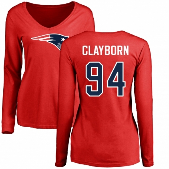 >NFL Women's Nike New England Patriots #94 Adrian Clayborn Red Name & Number Logo Slim Fit Long Sleeve T-Shirt