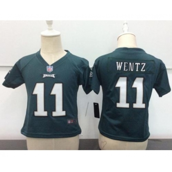 >Toddler Philadelphia Eagles #11 Carson Wentz Green Team Color Stitched NFL Nike Game Jersey