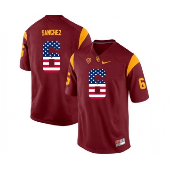 >USC Trojans 6 Mark Sanchez Red USA Flag College Football Jersey
