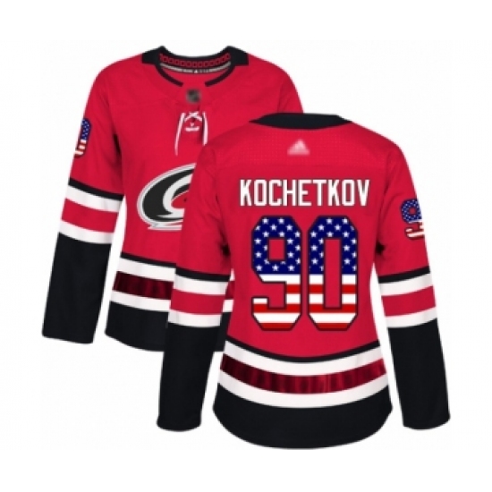Women's Carolina Hurricanes #90 Pyotr Kochetkov Authentic Red USA Flag Fashion Hockey Jersey