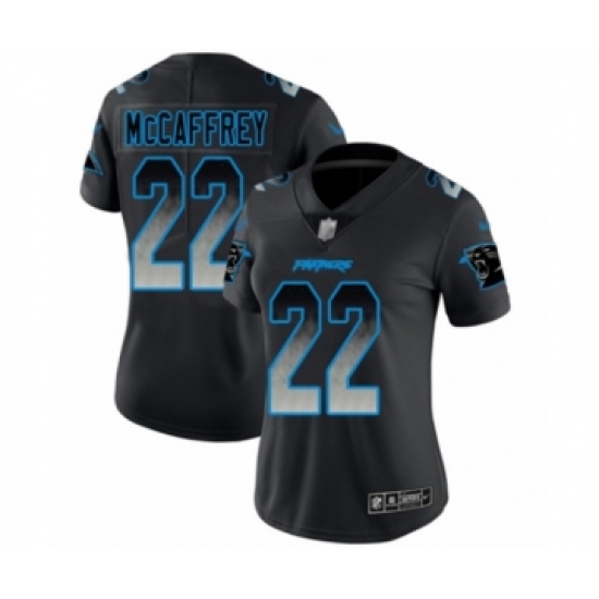 >Women's Carolina Panthers #22 Christian McCaffrey Limited Black Smoke Fashion Football Jersey