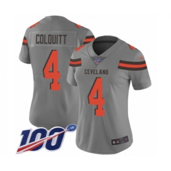 >Women's Cleveland Browns #24 Nick Chubb Limited Gray Inverted Legend 100th Season Football Jersey