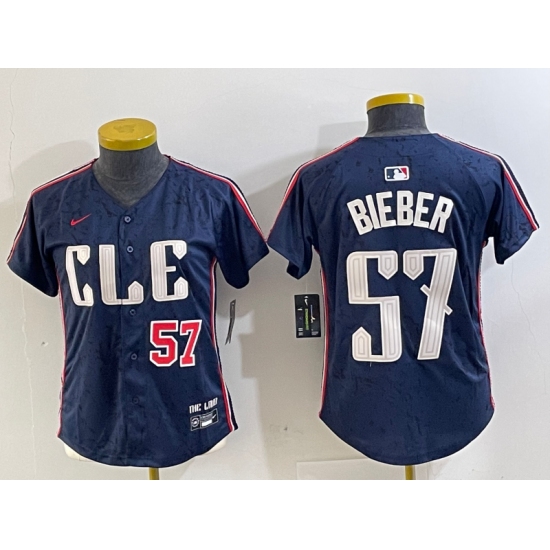 >Women's Cleveland Guardians #57 Shane Bieber Number Navy 2024 City Connect Limited Stitched Jerseys
