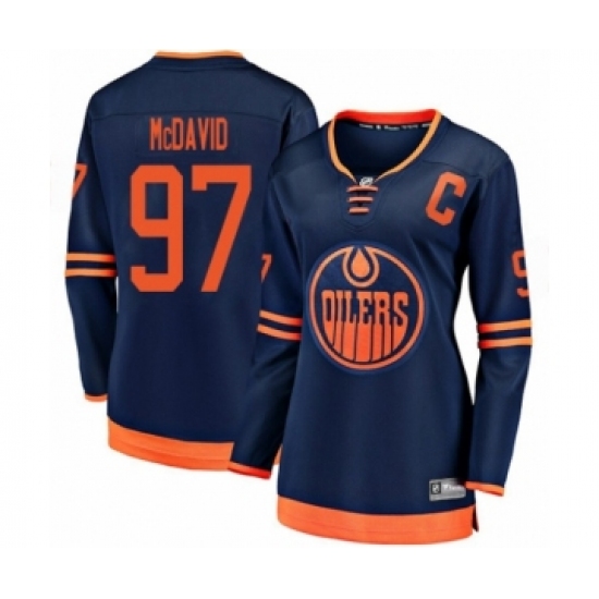 Women's Edmonton Oilers #97 Connor McDavid Authentic Navy Blue Alternate Fanatics Branded Breakaway Hockey Jersey