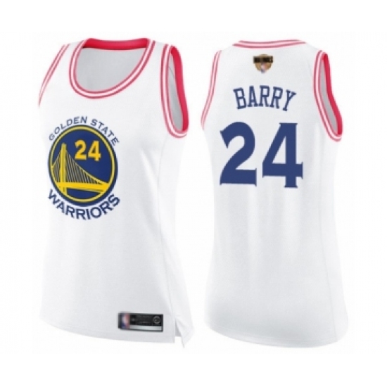 Women's Golden State Warriors #24 Rick Barry Swingman White Pink Fashion 2019 Basketball Finals Bound Basketball Jersey