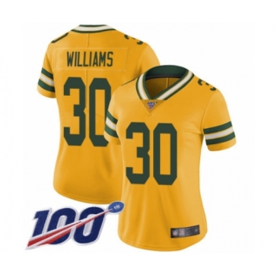 Women's Green Bay Packers #30 Jamaal Williams Limited Gold Rush Vapor Untouchable 100th Season Football Jersey