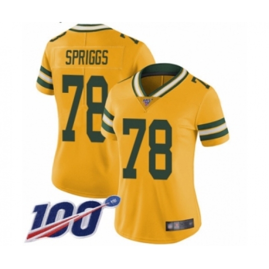 Women's Green Bay Packers #78 Jason Spriggs Limited Gold Rush Vapor Untouchable 100th Season Football Jersey