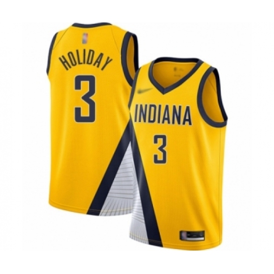 >Women's Indiana Pacers #3 Aaron Holiday Swingman Gold Finished Basketball Jersey - Statement Edition
