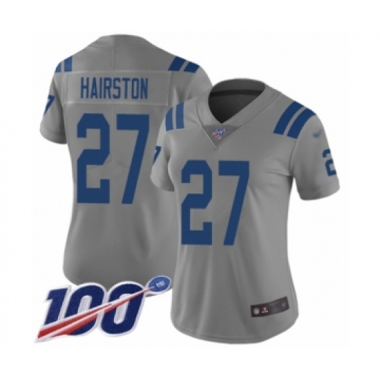 >Women's Indianapolis Colts #27 Nate Hairston Limited Gray Inverted Legend 100th Season Football Jersey