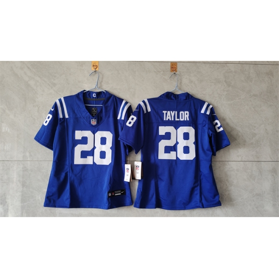 >Women's Indianapolis Colts #28 Jonathan Taylor Blue 2024 F.U.S.E. Vapor Stitched Jersey(Run Small)
