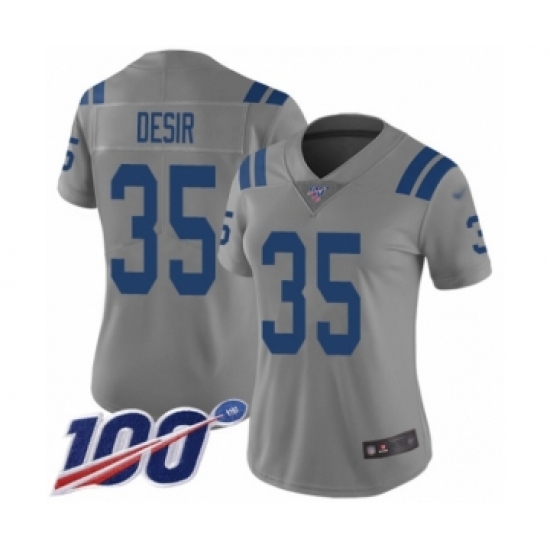 >Women's Indianapolis Colts #35 Pierre Desir Limited Gray Inverted Legend 100th Season Football Jersey