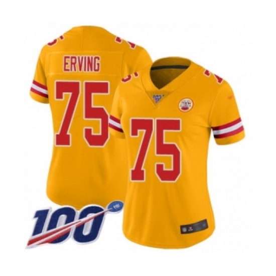 >Women's Kansas City Chiefs #75 Cameron Erving Limited Gold Inverted Legend 100th Season Football Jersey