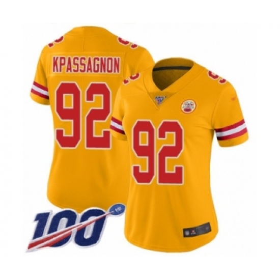 Women's Kansas City Chiefs #92 Tanoh Kpassagnon Limited Gold Inverted Legend 100th Season Football Jersey