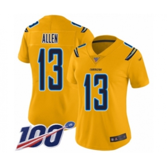 Women's Los Angeles Chargers #13 Keenan Allen Limited Gold Inverted Legend 100th Season Football Jersey