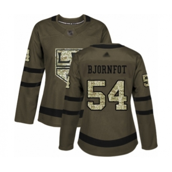 >Women's Los Angeles Kings #54 Tobias Bjornfot Authentic Green Salute to Service Hockey Jersey