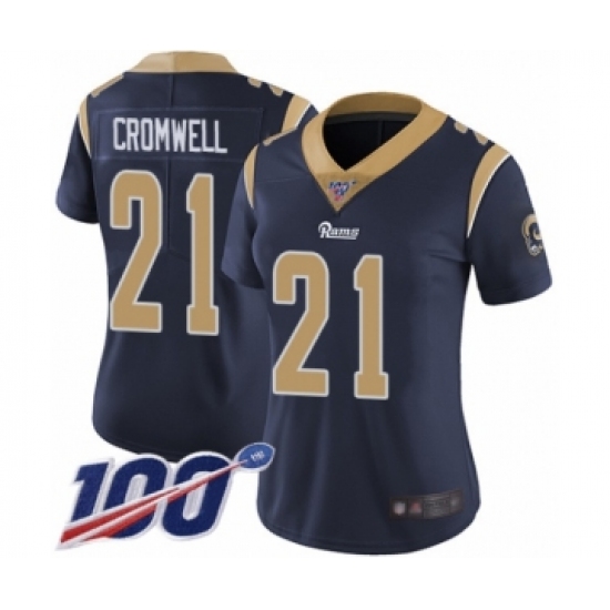 >Women's Los Angeles Rams #21 Nolan Cromwell Navy Blue Team Color Vapor Untouchable Limited Player 100th Season Football Jersey