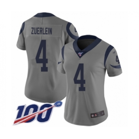 >Women's Los Angeles Rams #4 Greg Zuerlein Limited Gray Inverted Legend 100th Season Football Jersey