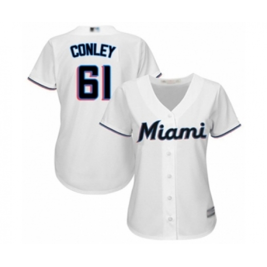 >Women's Miami Marlins #61 Adam Conley Authentic White Home Cool Base Baseball Player Jersey