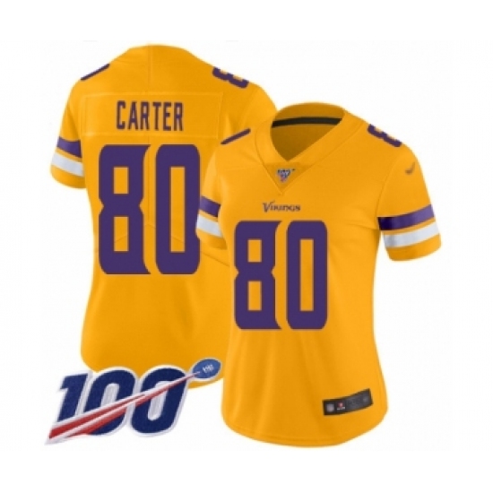 Women's Minnesota Vikings #80 Cris Carter Limited Gold Inverted Legend 100th Season Football Jersey