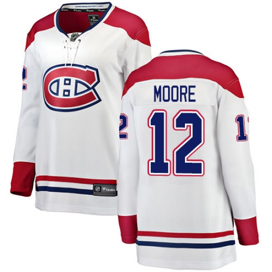 Home>NHL>Montreal Canadiens>Dickie Moore>Women's Montreal Canadiens #12 Dickie Moore Authentic White Away Fanatics Branded Breakaway NHL Jersey