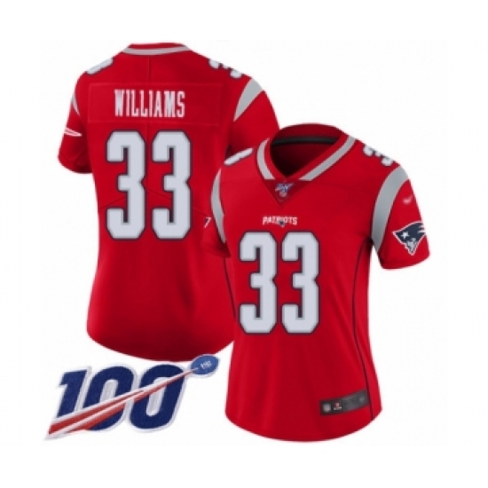 >Women's New England Patriots #33 Joejuan Williams Limited Red Inverted Legend 100th Season Football Jersey
