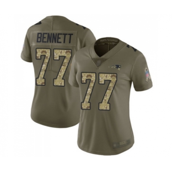 >Women's New England Patriots #77 Michael Bennett Limited Olive Camo 2017 Salute to Service Football Jersey