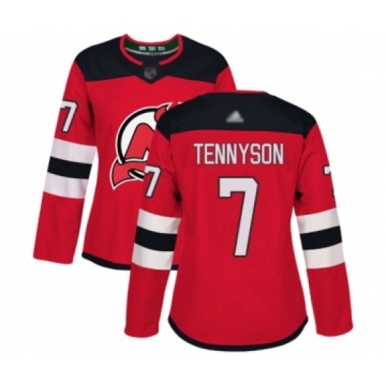 >Women's New Jersey Devils #7 Matt Tennyson Authentic Red Home Hockey Jersey