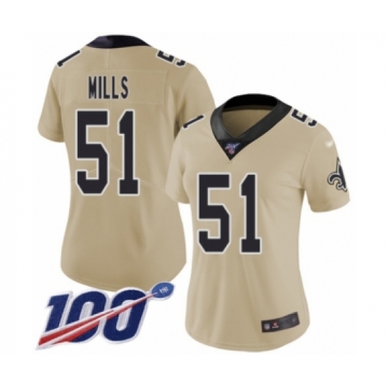 >Women's New Orleans Saints #51 Sam Mills Limited Gold Inverted Legend 100th Season Football Jersey