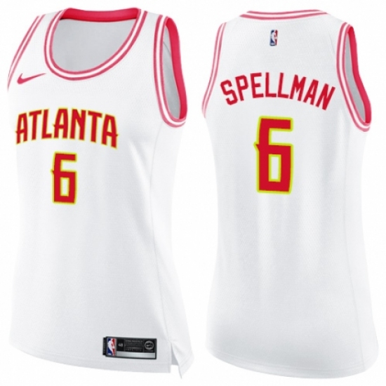 >Women's Nike Atlanta Hawks #6 Omari Spellman Swingman White/Pink Fashion NBA Jersey