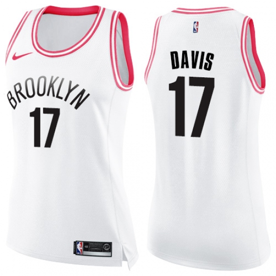 Women's Nike Brooklyn Nets #17 Ed Davis Swingman White Pink Fashion NBA Jersey