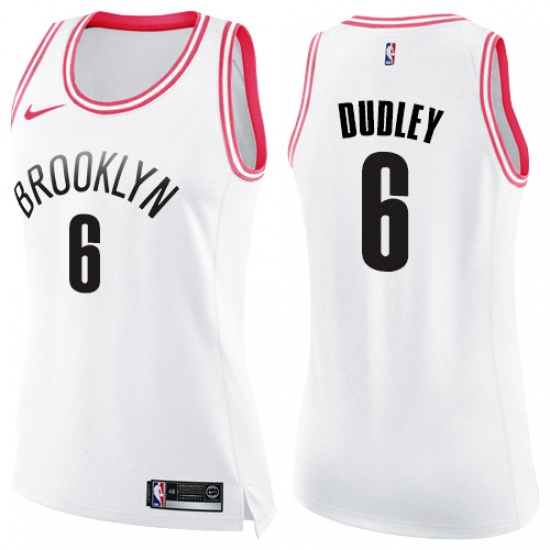 Women's Nike Brooklyn Nets #6 Jared Dudley Swingman White Pink Fashion NBA Jersey